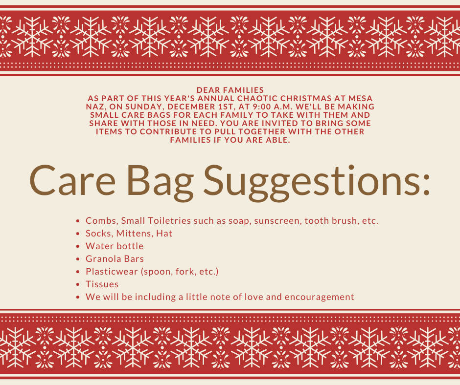 We will be kicking off the whole advent season with our second annual Chaotic Christmas. Journey classes for all ages will be cancelled on December 1st so that we can instead gather together for an inter-generational time of learning and celebration at 9:00 a.m. in the Studio and basketball court area. We will have birthday cupcakes for Jesus, crafts, and games which help us experience the meaning of advent together. We look forward to seeing your whole family! This is a wonderful time to invite a friend!